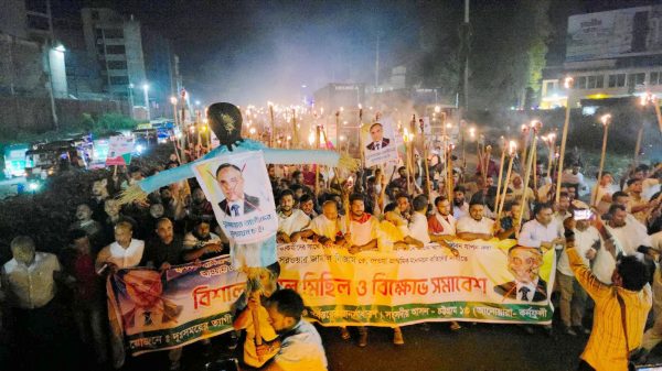 বৃহস্পতিবার (১৩ নভেম্বর) সন্ধ্যা ৭টার দিকে উপজেলার কালাবিবির দিঘির মোড় থেকে এই মশাল মিছিল শুরু হয়। এসময় মিছিলটি বিভিন্ন সড়ক প্রদক্ষিণ শেষে টানেল সংযোগ মোড়ে এসে বিক্ষোভে রূপ নেয়। বিক্ষোভে সরওয়ার জামাল নিজামের ছবি সম্মিলিত পুত্তলিকা দাহ করা হয়। মিছিলে চট্টগ্রাম-১৩ আসনের বিপুলসংখ্যক নেতাকর্মী অংশ নেন।